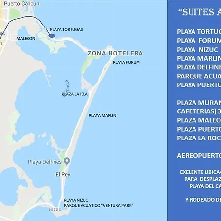 近くの観光スポットには,カンクンにあるSuites And Artから4.7キロメ-トル離れた所の28市場で,宿泊から自動車で約10分アレシ-フェスなどがあります. カンクンにあるホテルからスカセルまで歩いて約25分です. ホテルから2.9キロメ-トルトレス リオス エコパ-クなどの自然の景色も楽しめます. 遠方からお越しの方には,カンクン国際空港まで車で20分です.